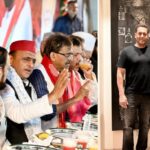 हाथ मिलाते नेता और धक्का-मुक्की करते कार्यकर्ता